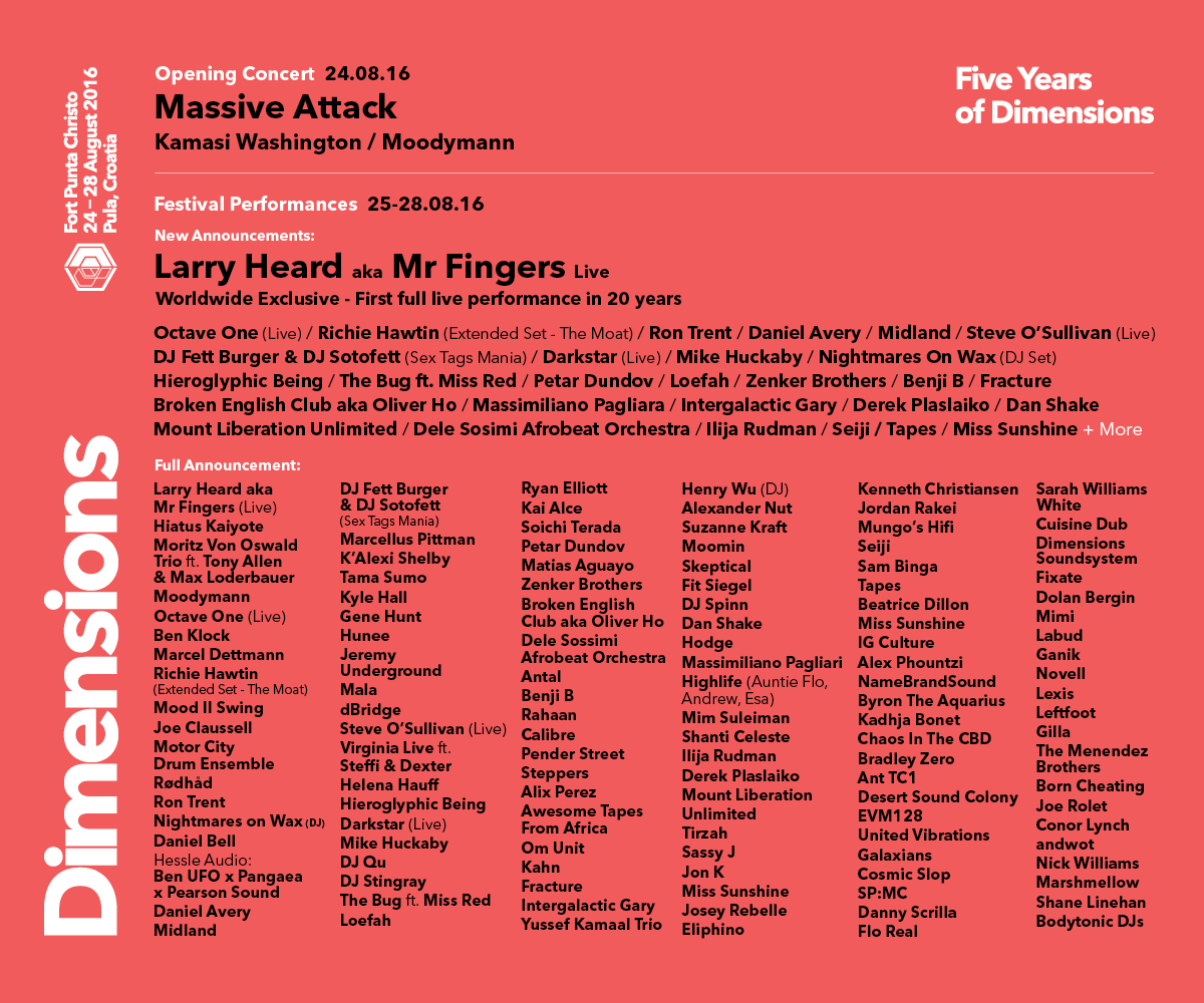 Regarded as one of the best curated line ups in electronic music, Dimensions Festival returns to Pula for 2016.