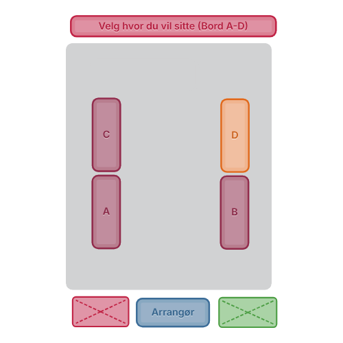 Bordene er inndelt i 4 grupper, velg hvilken gruppe du vil sitte på